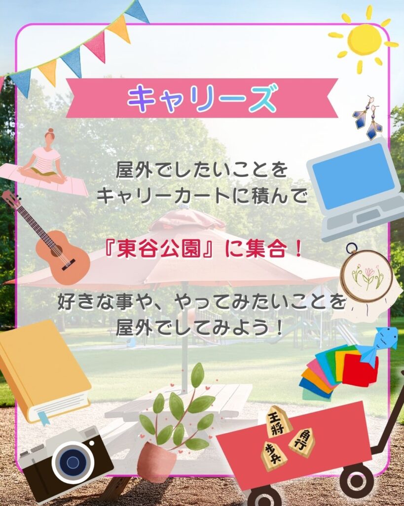 『キャリーワゴンやカートに、屋外でしたいものを積んで、東谷公園に集まろう!』と言うものです。